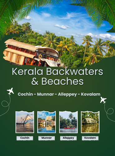 Duration: 6 Nights / 7 Days (1N Cochin + 2N Munnar + 1N Alleppey Houseboat + 2N Kovalam)